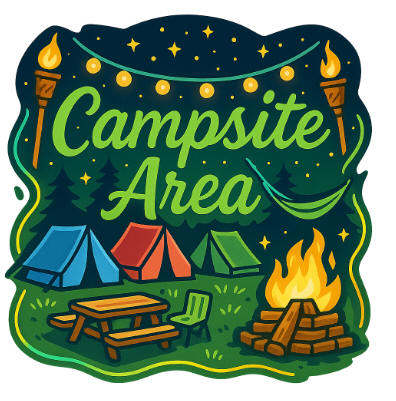 Cold drinks and grill foods stay perfect in the shared fridge while string lights drape through the trees, turning the night sky into a gentle canopy. Two clean, bright porta potties stand within easy reach, and path lights guide each step. Your favorite camping tunes drift through the trees at a friendly volume.