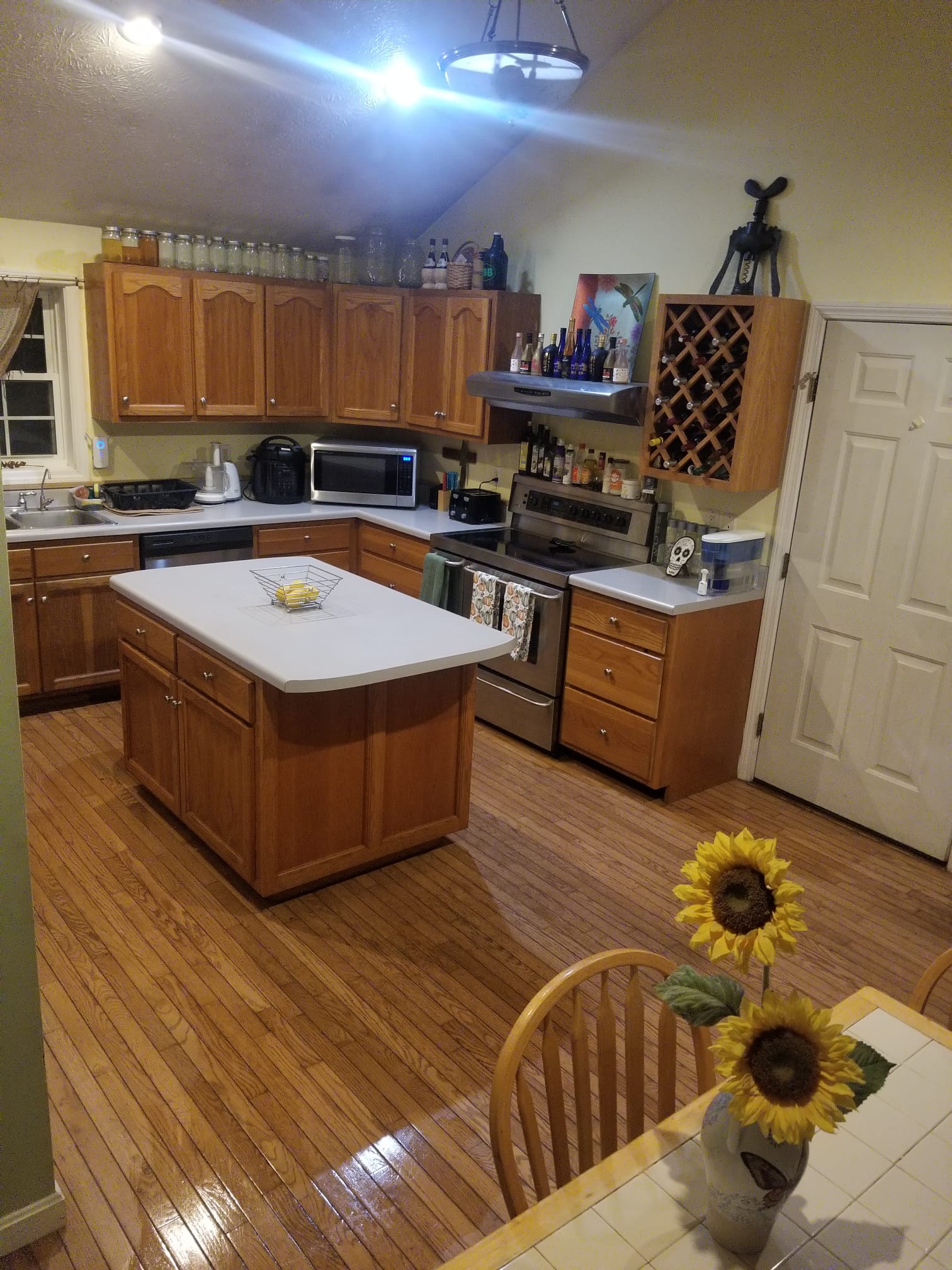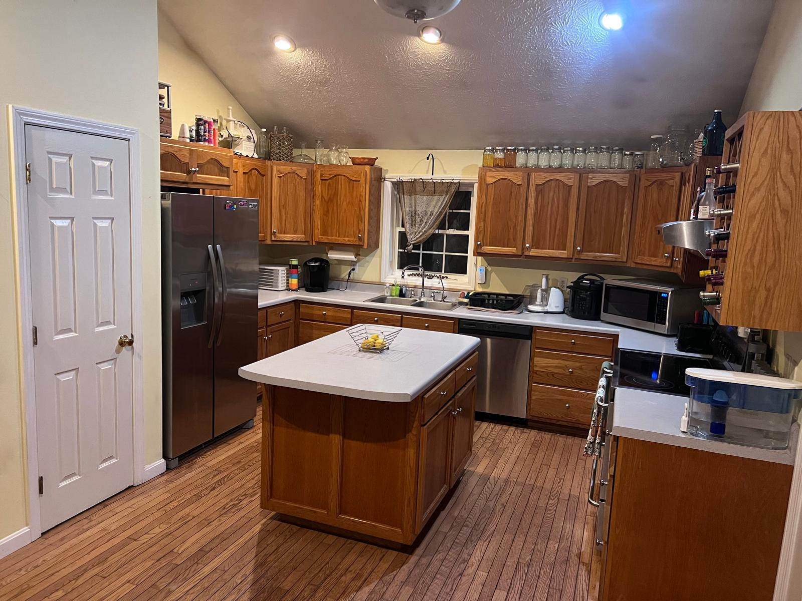 Step into a farmhouse dream with mason jars and a large wine rack. Sunlight pours across gleaming hardwood floors and rises into cathedral ceilings, while stainless steel appliances anchor the space with quiet confidence. The room is enormous with generous counters and clever storage everywhere, so prepping a weekday dinner or hosting a feast feels effortless. Power through any recipe with a full suite of tools at your fingertips including crock pots, a slow cooker, a high performance blender, a precise food processor, a dehydrator for gourmet snacks, and twin juicers for fresh morning energy. There is a dishwasher that fits a lot of dishes to make cleanup a breeze A gorgeous spice rack overflows with options so every dish can sing, and the walk in pantry is thoughtfully organized with labeled shelving for each person’s food, making shared living easy and civilized. Everywhere you look there are smart little gadgets that turn tricky steps into simple pleasures. The entire space is spotless at all times, the kind of crisp clean that makes you want to cook just for the joy of it. Even life’s small details are elevated with a personal mailbox in the kitchen so your letters and packages find you without fuss
